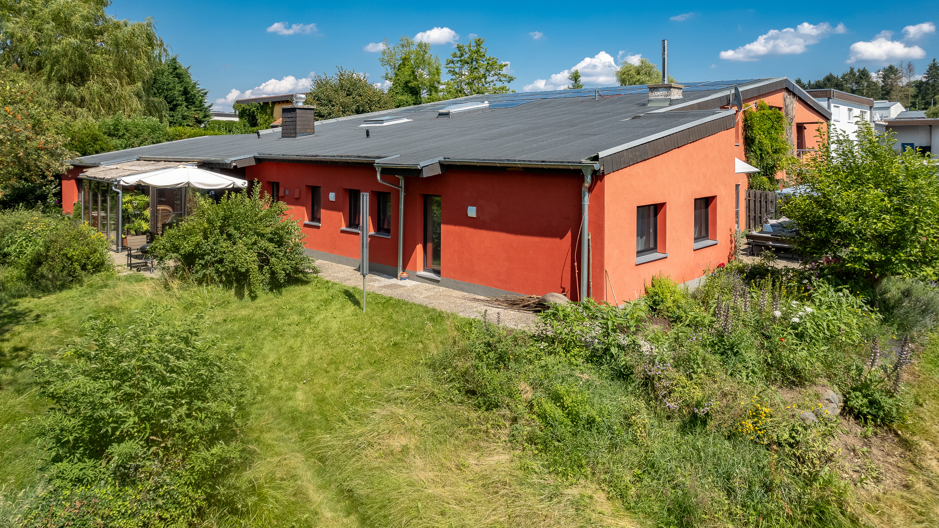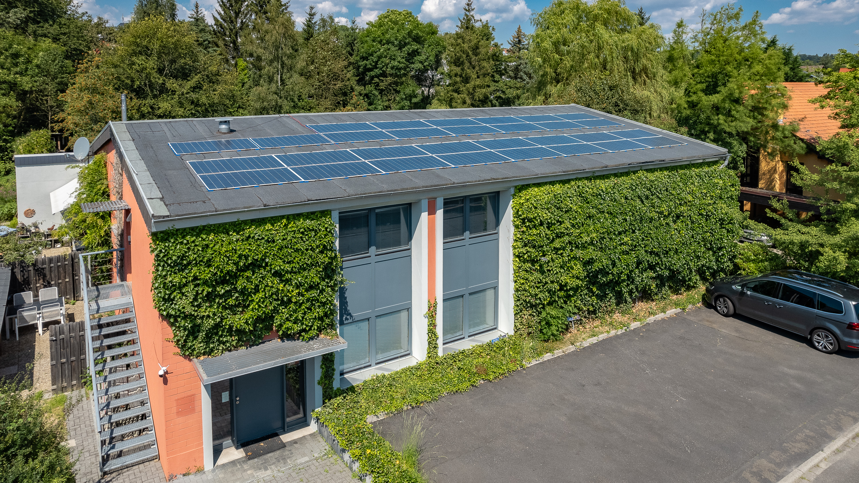 30 kWp Photovoltaikanlage (seit 05/2023), PV-Überschussregelung, Wallbox für E-Auto-Laden mit eigenem Strom.