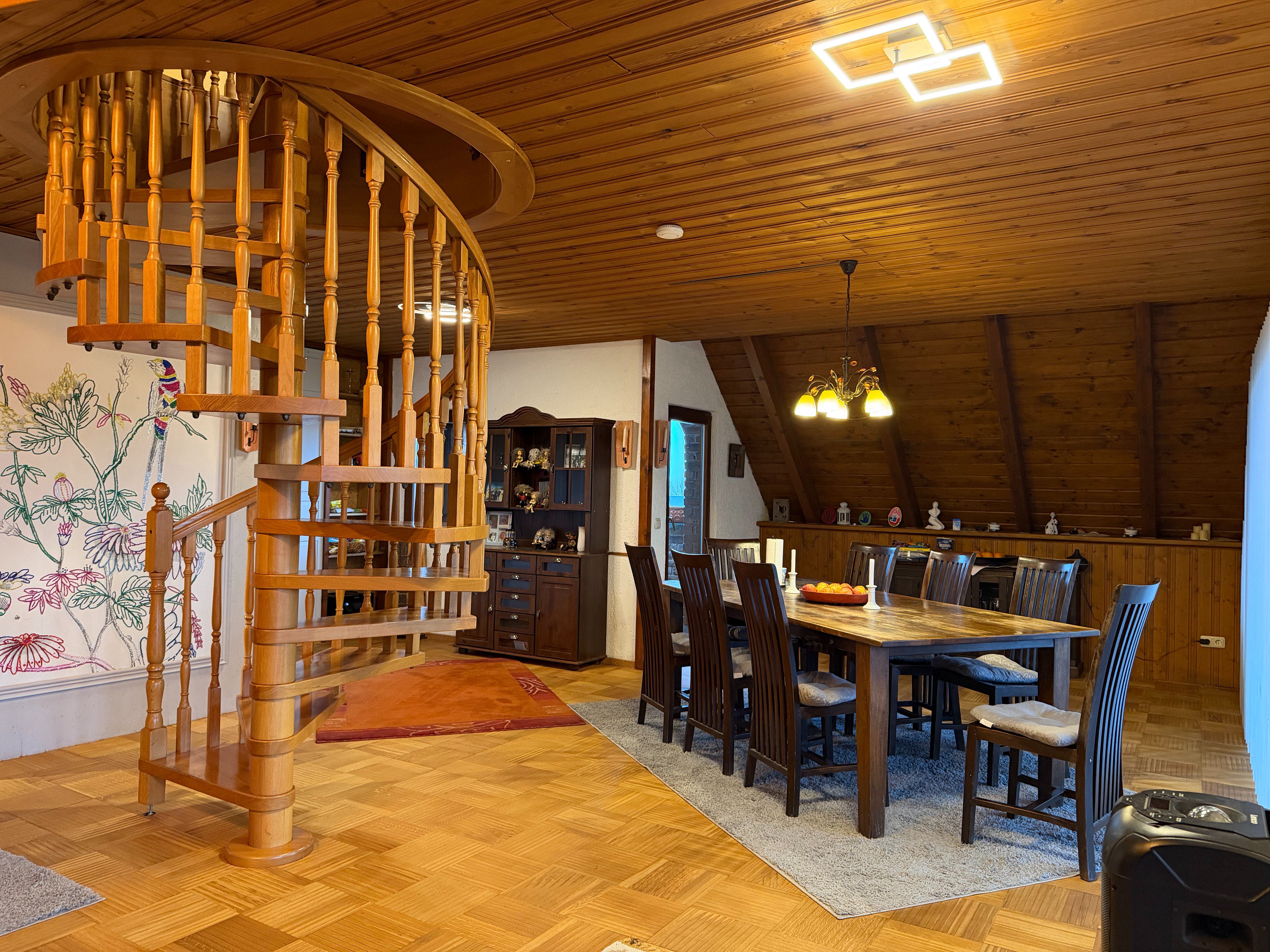 • Architektonisches Highlight - Maisonette-Wohnung im Dachgeschoss - das Herzstück des Hauses beeindruckt mit offenem Loft-Charakter, dunklem Holz an Wänden, Decken und Böden und bietet ein einzigartiges Wohngefühl.